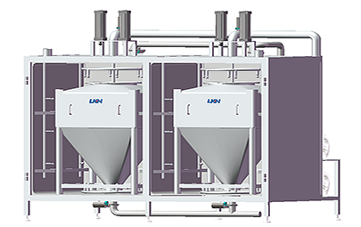 優(yōu)康恩自動化料系統用于對粉料和其它配料進行乳化和水化的混料系統設備。其中真空混料機可在密閉真空容器下進行高速剪切乳化混合綜合產品、各種粉末和液體等,每小時化粉量可達到3T-5T。優(yōu)康恩自動化料系統可利用真空作用將配料輸送到化料設備中,省去了操作工承擔這項繁重工作的需要。